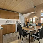 This Havrvig property includes a dining area with coffee and tea making equipment, a fridge, and an oven.